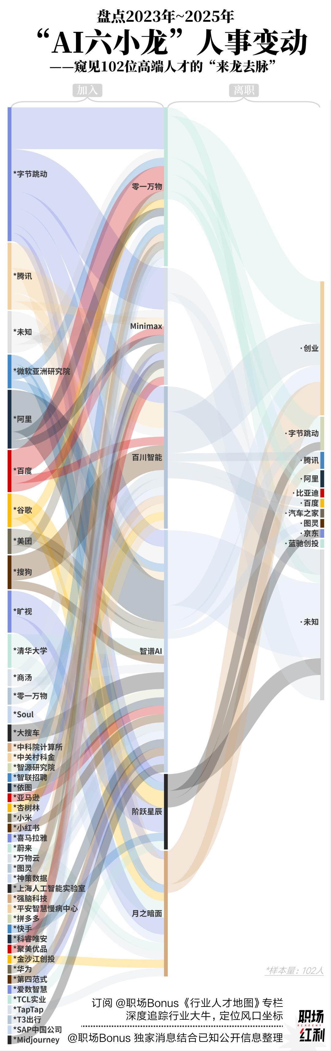 一个行业的沉浮,处于行业内的高端人才往往能最先感知到。《职场Bonus》盘点了2023年以来“AI六小龙”的高端人才流向情况,他们的选择和流向,也指示着红利的变迁。
