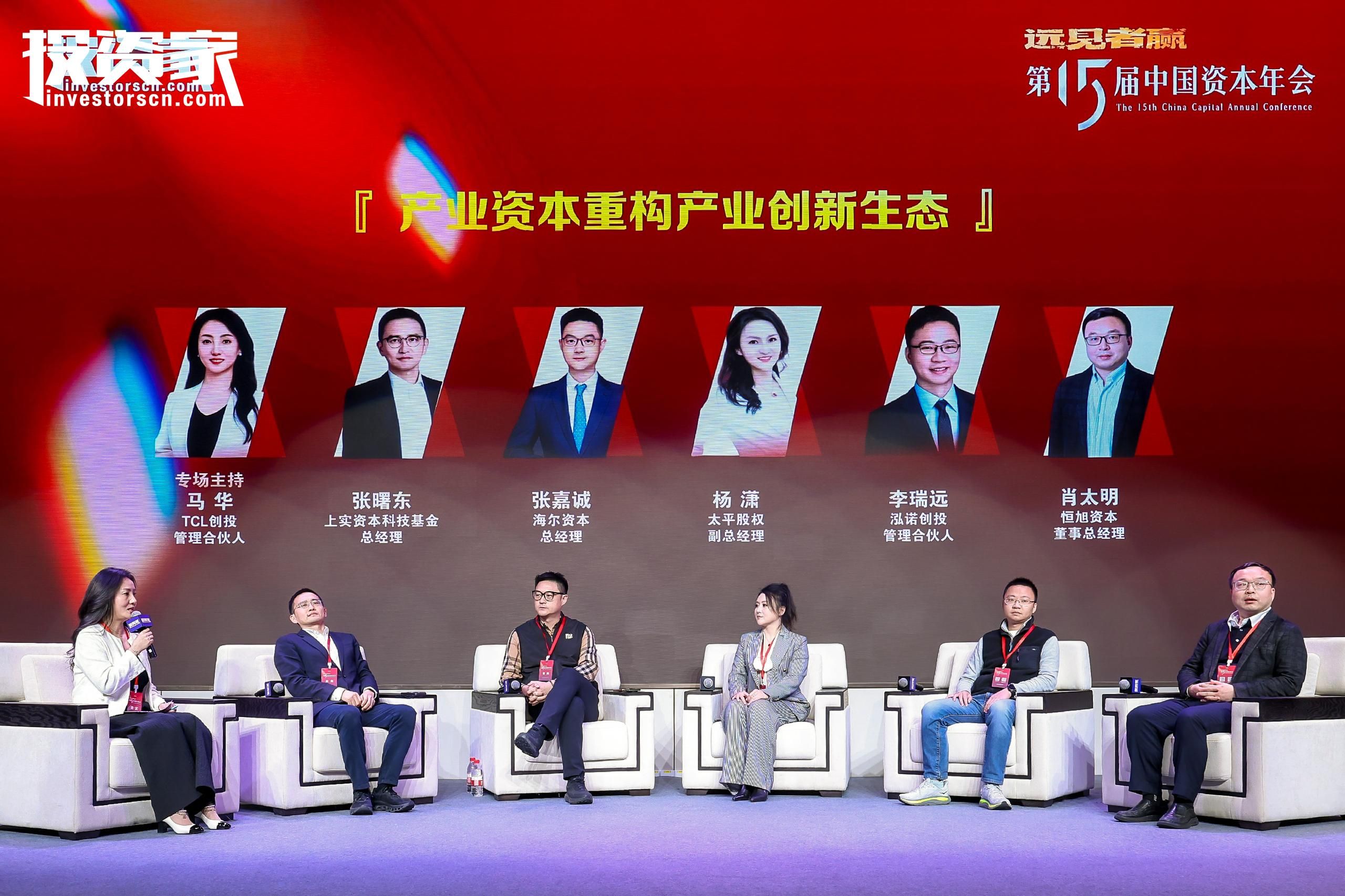 最后登场的“产业资本重构产业创新生态”圆桌,汇集了TCL创投合伙人马华、上实资本科技基金总经理张曙东、海尔资本总经理张嘉诚、太平股权副总经理杨潇、泓诺创投管理合伙人李瑞远、恒旭资本董事总经理肖太明等产业资本代表。嘉宾们分享了产业资本如何通过战略协同、供应链赋能和创新孵化等方式,深度参与并重塑产业创新生态,培育未来增长点。
