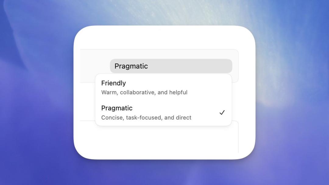 两者的能力完全一样,只为贴合你的喜好。只需在应用、CLI和IDE扩展中输入/personality命令即可切换。