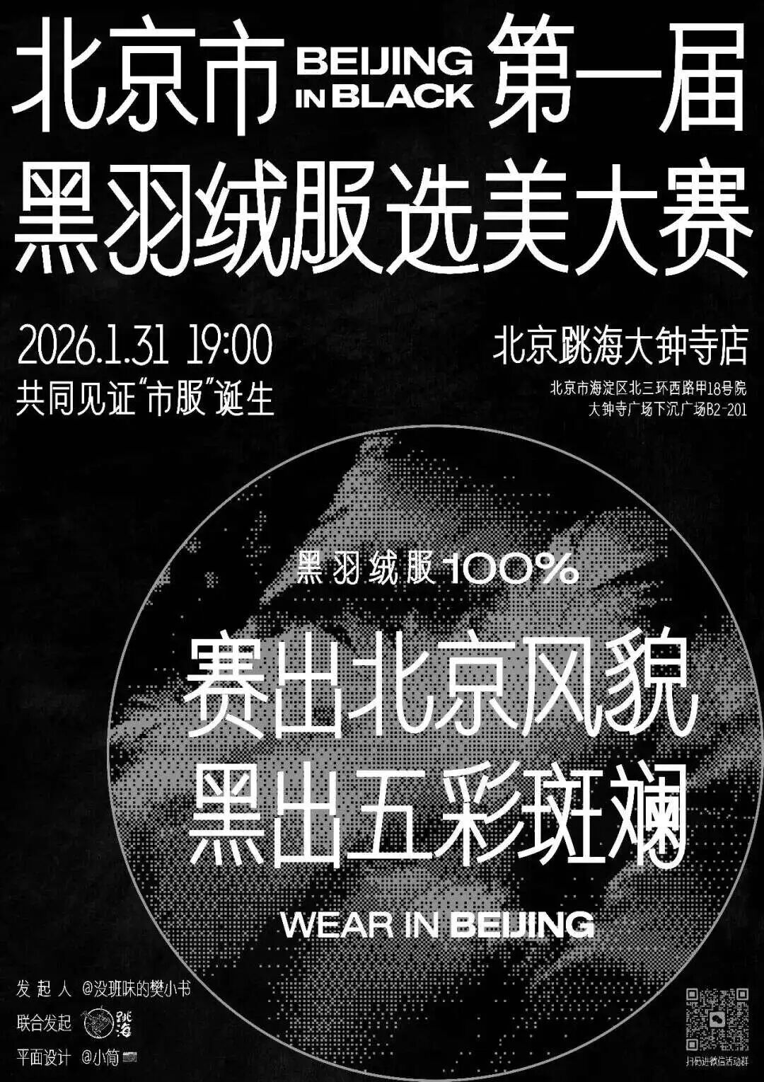 2026年1月的最后一天,温度直逼零下的北京夜里,三百多号牛马裹着压箱底的黑色羽绒服,哆哆嗦嗦地齐聚在跳海酒吧门口,只为给这件在北京时尚史(如有)上留下浓墨重彩一笔的「市服」,办一场正儿八经的选美大赛。