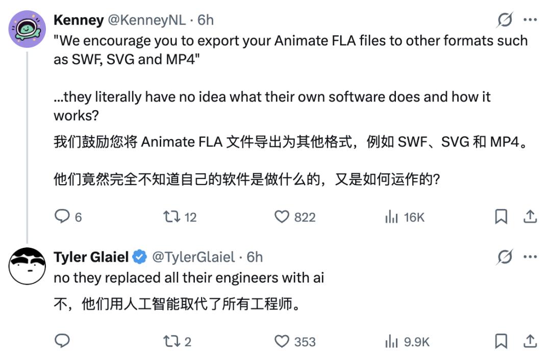 这么看来,关闭Animate可能只是因为这款软件太老了,叙事上完全和AI脱节。与其花钱维护,不如把资源放在更能带来热度的新产品上。