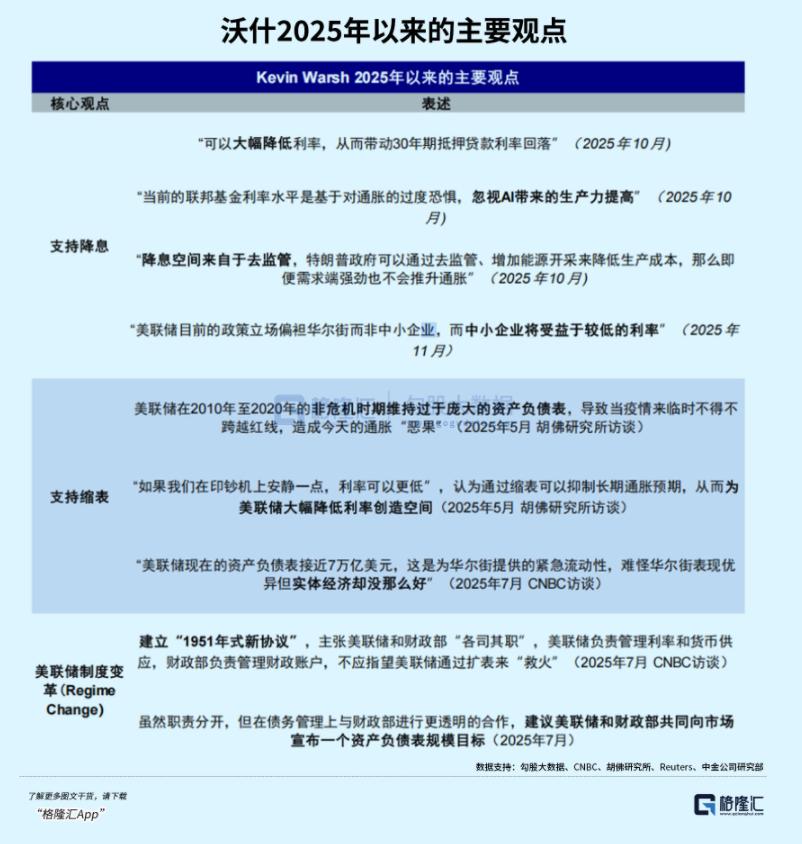 大家一开始都觉得沃什是“鹰派”,后面会缩表收紧钱袋子,其实可能错了——他是跟特朗普路子很合的“务实派”,核心主张:“降息+缩表”。
