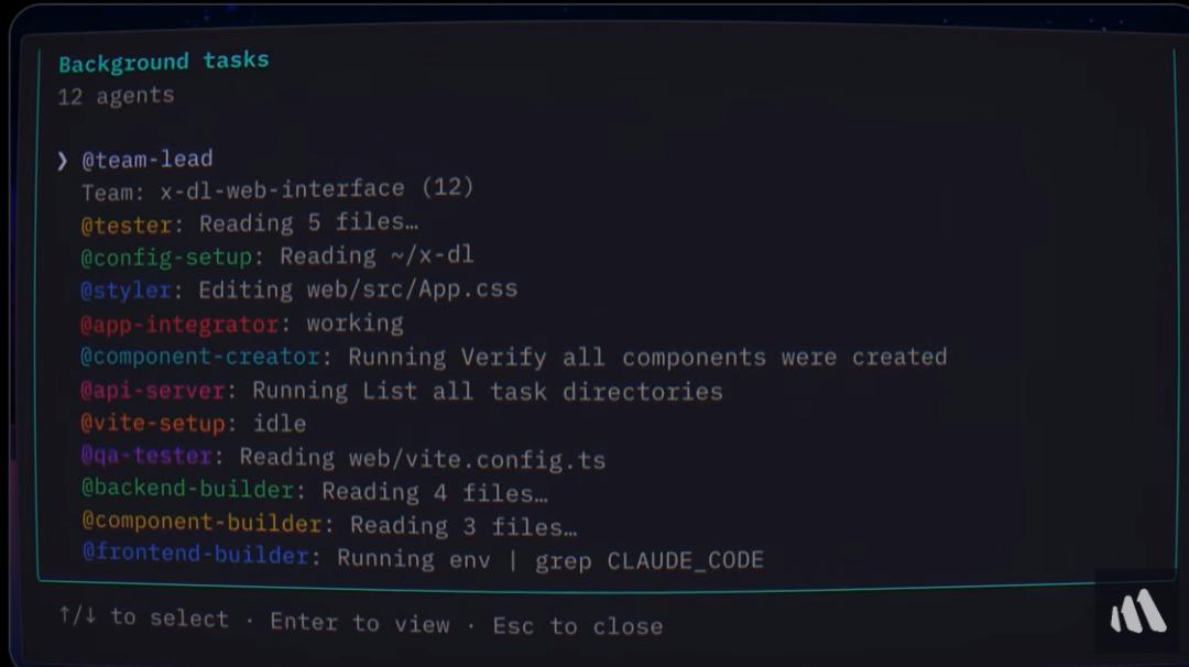 执行任务后,奇迹发生了!Claude自动创建了Team Leader、Front-end Builder、Backend Builder、Component Builder和QA Tester。