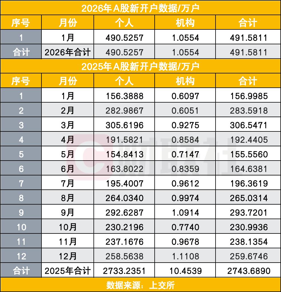 A股1月新开户492万户,同比增长2倍多