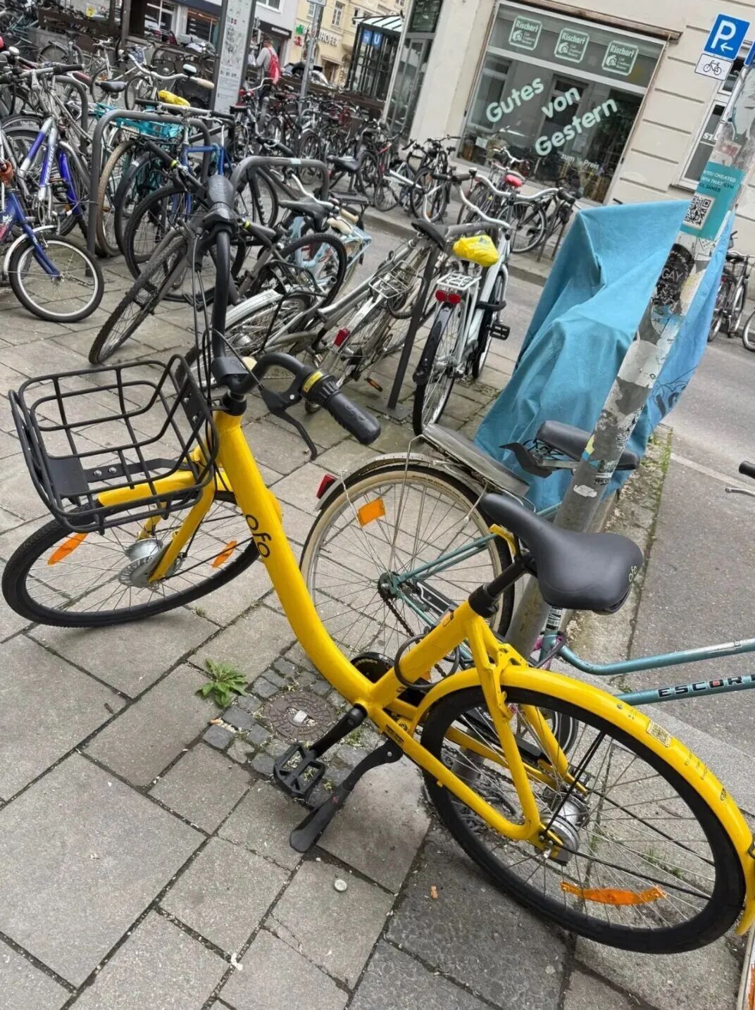 黄色是时代的眼泪,喊着退押金,是对旧日情仇还有牵挂。伦敦、柏林、巴黎、阿姆斯特丹……小红书上,网友们在这些国际化的都市持续发掘着国产初代共享单车的身影。很多单车还在运行,时隔多年依然维持着崭新光洁的样貌,还有一些已经被个人“收归私有”,放在自家后院。一次次他乡遇故知,它们仿佛从没离开过。