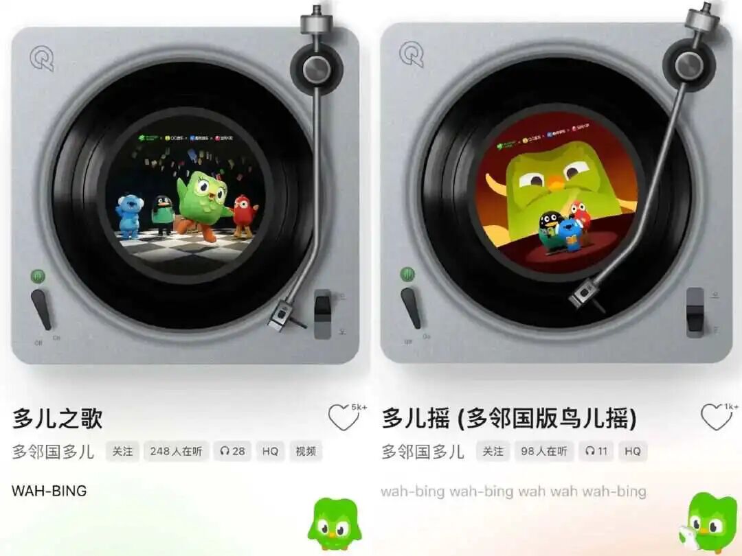 继2025年多邻国在中国市场与瑞幸、优酸乳、原神、影石360等品牌联动推出多个合作产品后,2026年小绿鸟除了此次的周边外,还在1月份官宣了与QQ音乐、酷狗音乐和全民K歌的大联动,官方称其为【音乐劝学计划】。