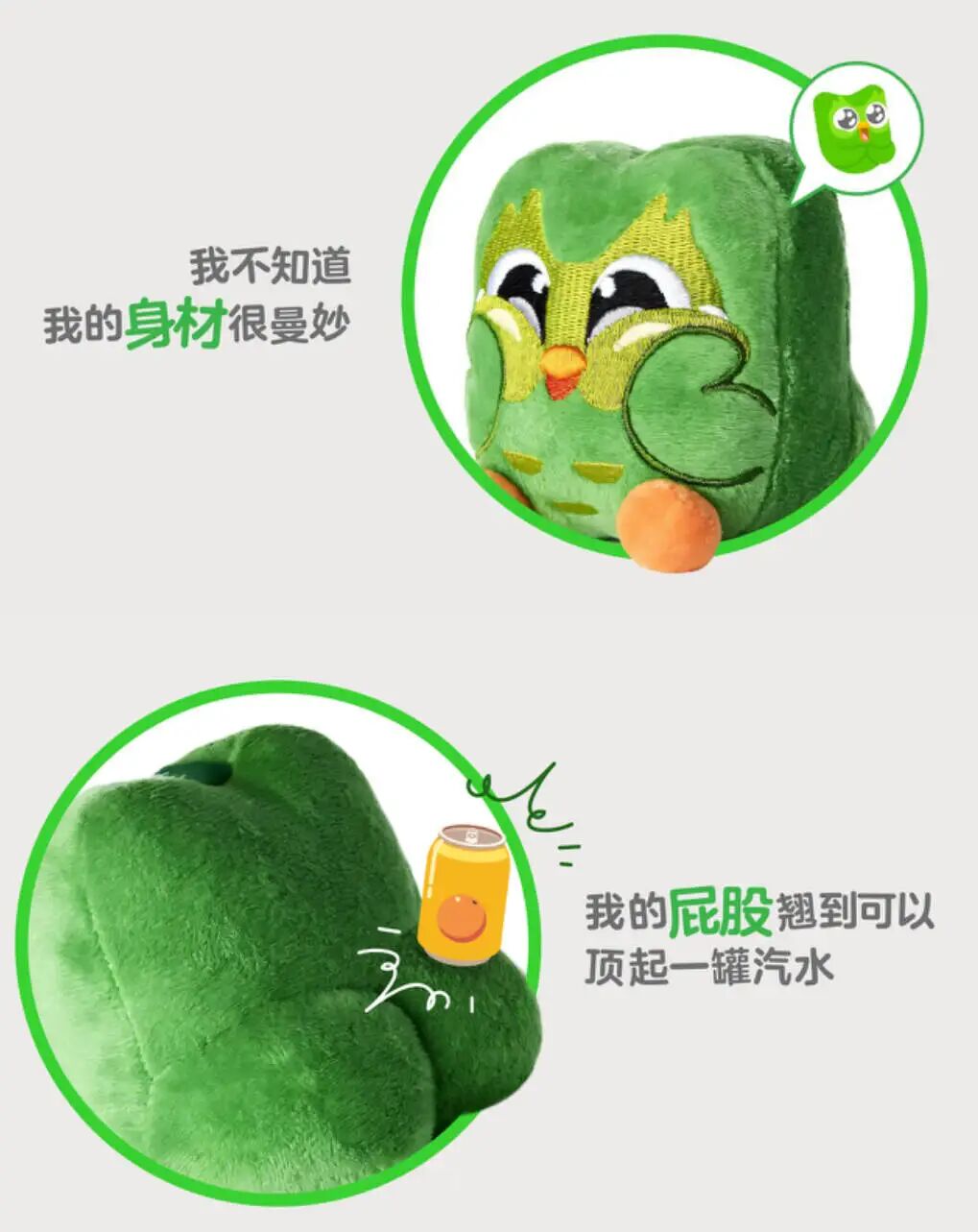 完美复刻多儿的小绿鸟形象——“前有萌脸,后有翘臀”。