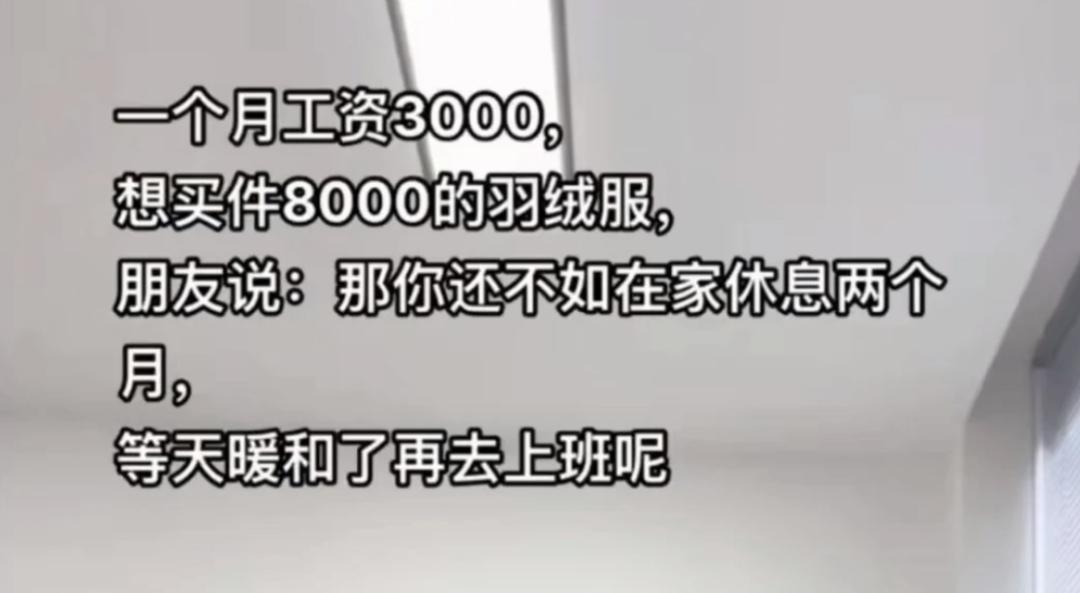 “我一个月工资3000,想买一件8000块的羽绒服,我妈说我不如这三个月请假得了。”