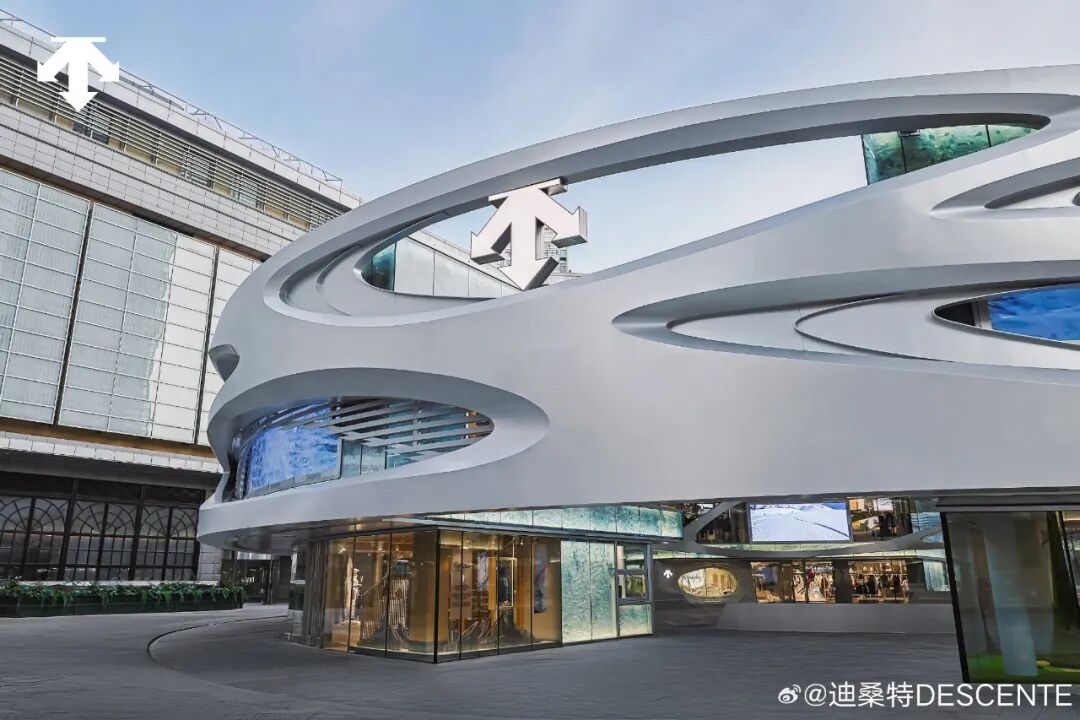 迪桑特外观以及在北京环贸开设的「未来之城」全球旗舰店,不仅接手原阿玛尼旗舰店铺位,其标志性的「莫比乌斯环」设计,与 LV 打造上海 “路易号” 邮轮的设计思路异曲同工。两者通过构建奢侈品式的专属设计标识,衔接品牌高端化的定位与消费体验。