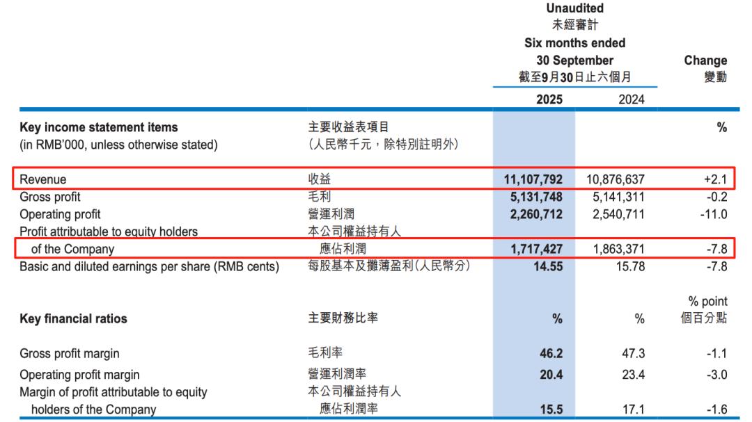 2025 财年上半年,营收 111.08 亿仅增 2.1%,净利润直接狂跌 7.8% 至 17.17亿的成绩单,戳破了国民品牌的光环。