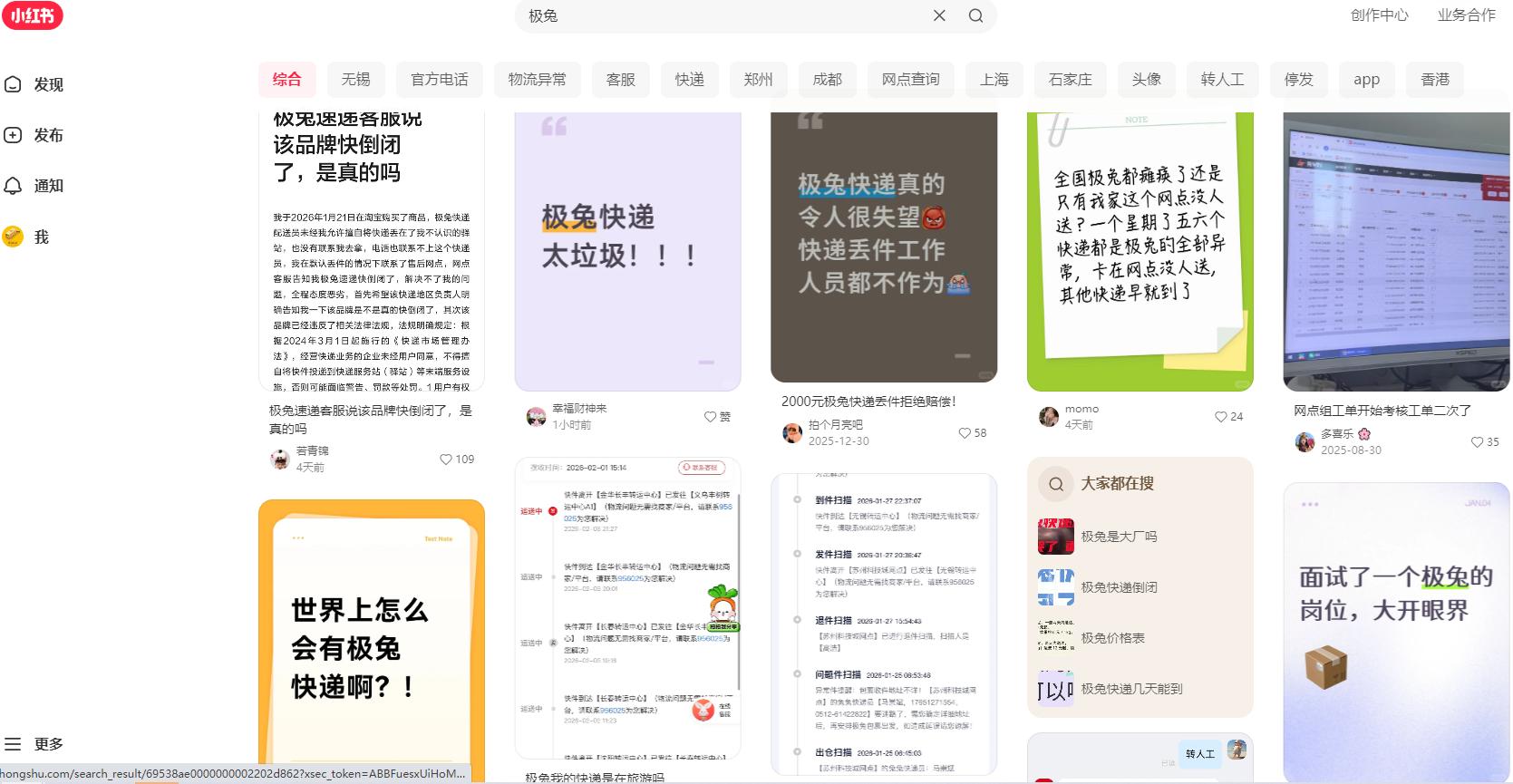 在社交媒体平台小红书上搜索“极兔”,映入眼帘的大部分内容并非对其战略转型的探讨,而是大量用户自发发布的、充满具体细节的消费投诉与不满倾诉。