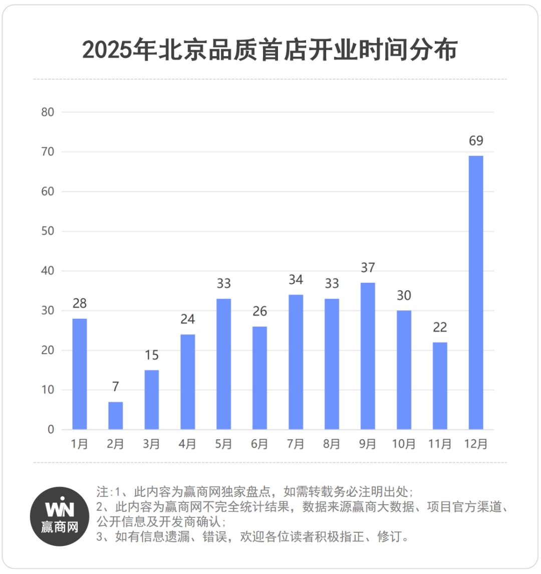 ■ 开业时间分布上,除了过春节的2月新开首店较少,其他月份均有较多新首店,尤其是7-10月一直保持30+的稳定输出,以及得益于多个新项目的年底开业,12月开业近70家首店。