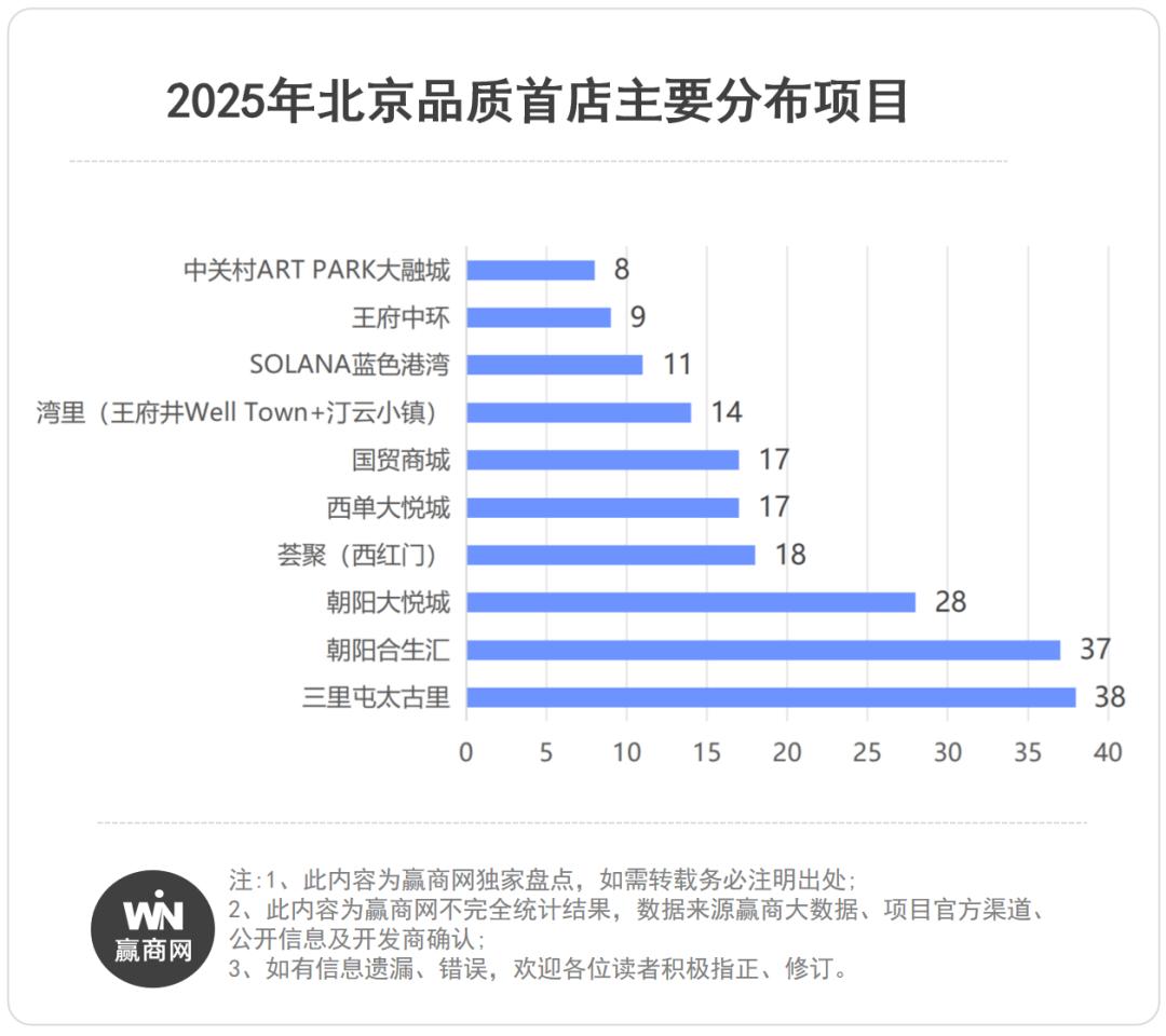 头部项目的虹吸效应明显,2025年首店数量排名前10的商场吸引了全市过半的品质首店,且这些头部项目大多位于城市核心区,朝阳区依然占据绝对优势地位。