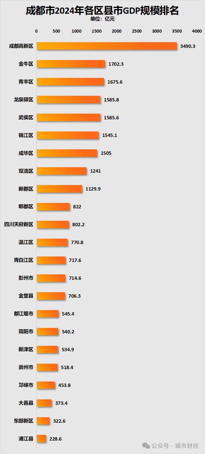 成都的外围区县GDP水平与中心城区的差距,是成都未来做强总量的发力点。