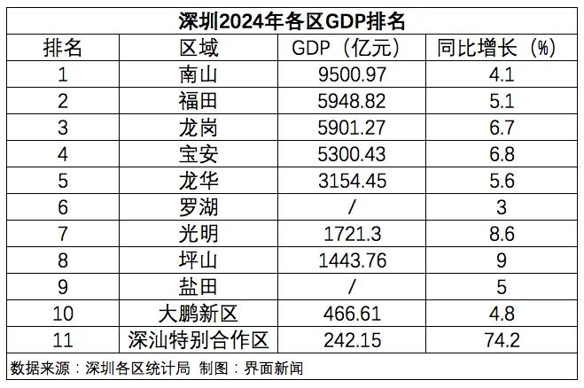 2024年深汕合作区GDP突破200亿元,GDP增速高达74.2%。