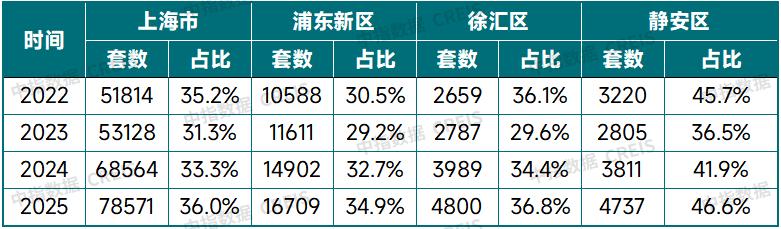 分区域看,2025 年该类二手房成交中,浦东新区以 1.7 万套的成交量位居全市首位;徐汇区、静安区分别成交 4800 套、4737 套,该类房源占两区二手房成交总量的比重达 36.8%、46.6%,均高于全市 36% 的平均水平。三区合计成交 2.6 万套,同比增幅达 15.6%。此次上海新政落地,或进一步加速三区该类总价、面积及楼龄区间二手房的去化进程,为全市二手房市场有效发挥托底作用。