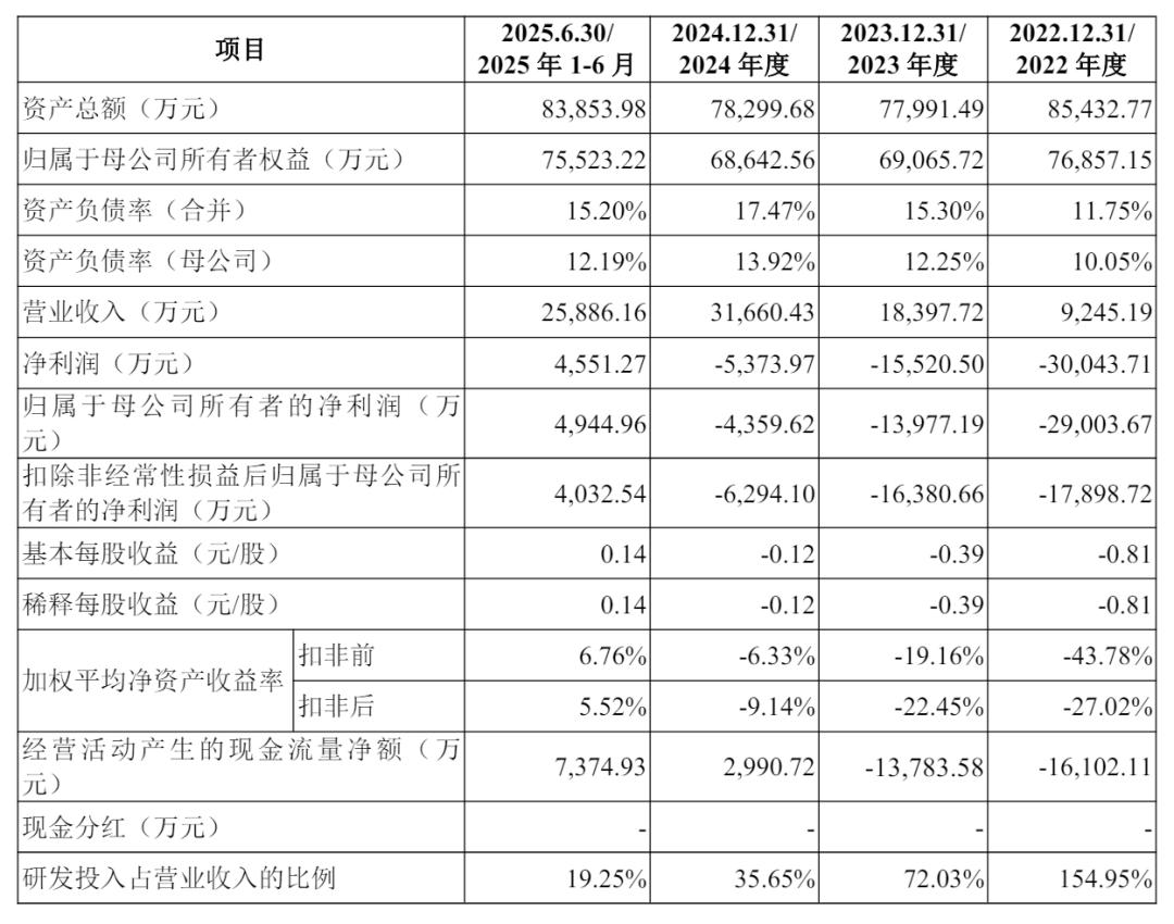 北芯生命2025年上半年营收为2.59亿元,净利为4551万元,扣非后净利为4032万元。