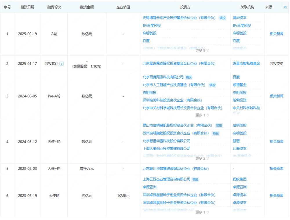 企查查信息显示,在刚刚宣布的此次融资后,生数科技已累计完成6次融资和1次股权转让,华为、蚂蚁、百度、智谱等企业均曾投资生数科技。