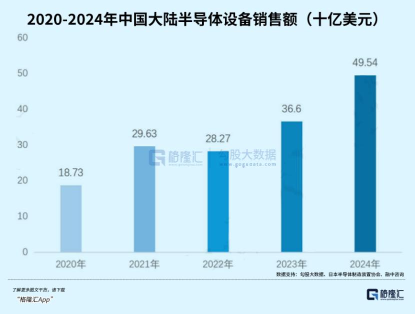 与此同时,中国大陆已连续五年稳居全球最大半导体设备市场,2024年销售额达495.4亿美元,占全球市场份额的42.34%。