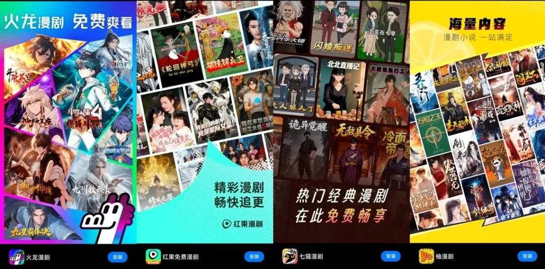 而腾讯虽迟但到,就在昨天上线了独立漫剧APP“火龙漫剧”,采用竖屏免费模式,单集时长多集中在1—3分钟,目前已上线超过1700部漫剧作品。此前腾讯生态中,漫剧主要存活在微信里,根据今年1月微信公开课PRO上的微信短剧生态数据,漫剧上架增长3380%,是增长最快的细分赛道。