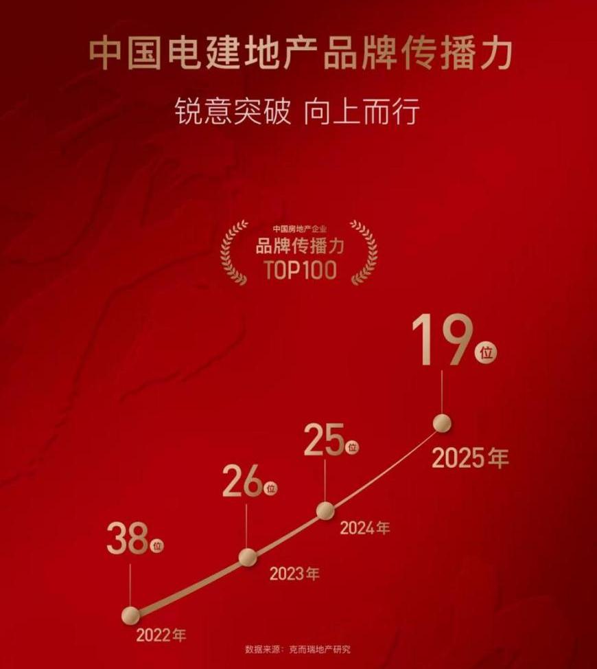 同时,行业地位大力提升。根据克而瑞发布的2025中国房企销售排行榜,中国电建地产全口径销售金额排名第25位,较四年前提升20个名次;品牌传播力更是从此前的66位飞升至19位,实现规模与声量的全面跨越。