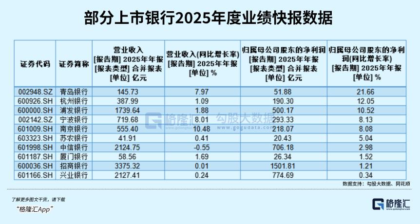 截至2月4日,已有青岛银行、杭州银行、浦发银行、宁波银行等10家A股上市银行发布2025年业绩快报,显示这些上市银行业绩总体稳健增长,盈利端全线飘红。