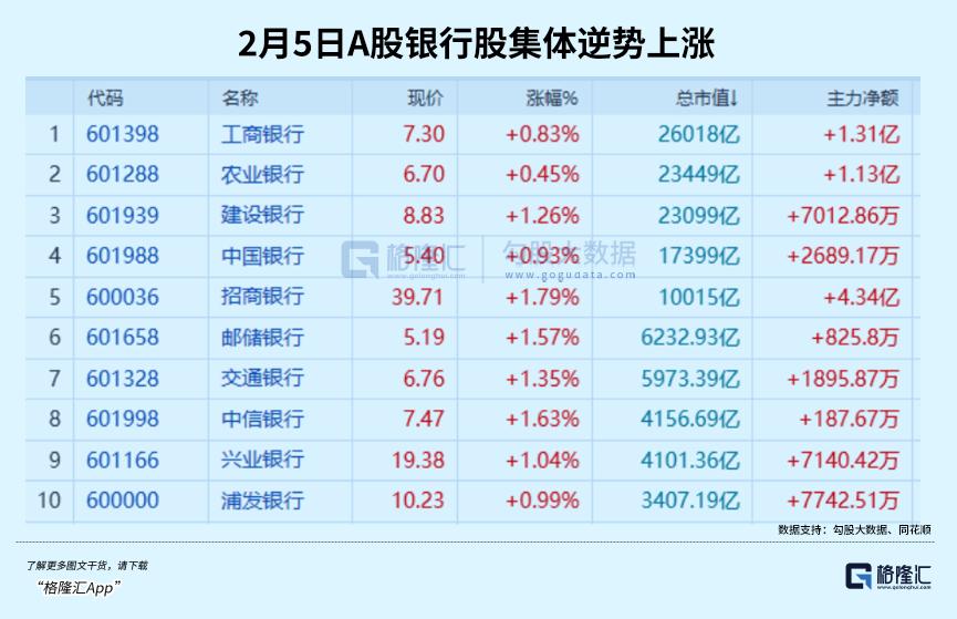 2月4日单日,成交额靠前的招商银行、工商银行等标的,均呈现资金净流入态势,印证了避险资金对银行股的明显认可。