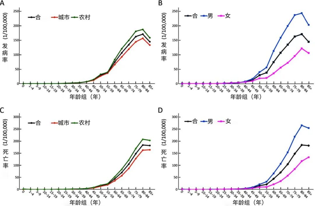 不论城乡、不论性别,胃癌的发病和死亡在40岁之后上升明显|原图:参考资料4