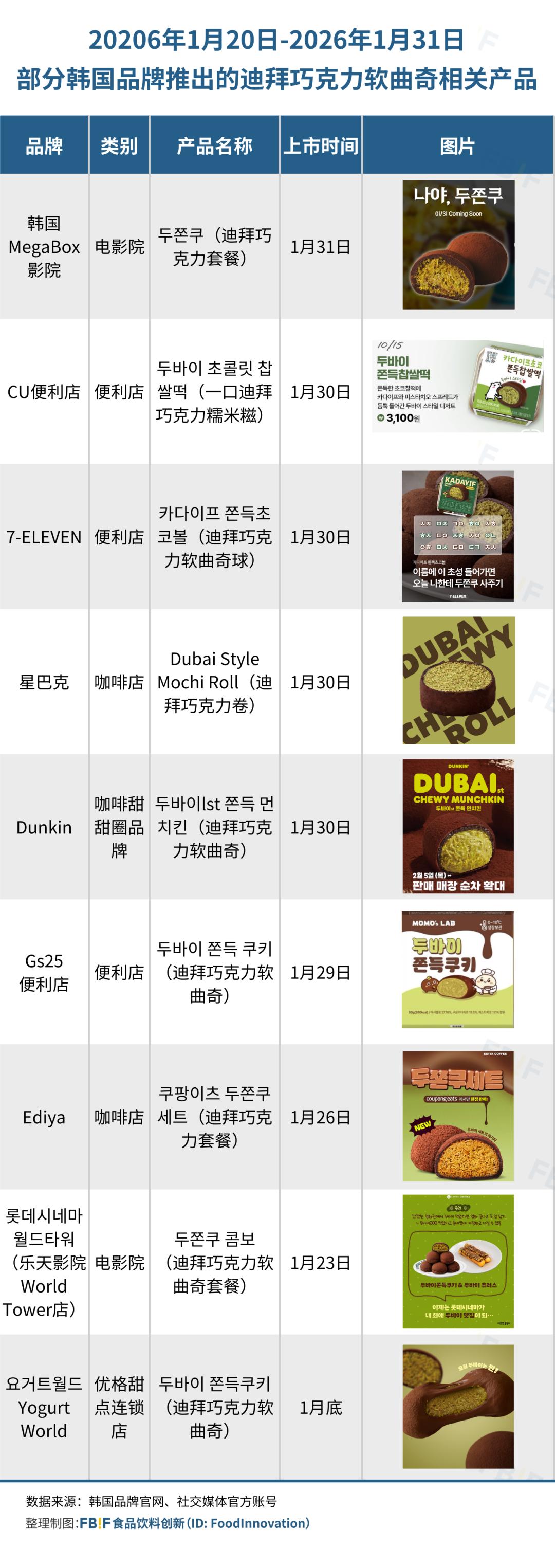 据FBIF不完全统计,仅在2026年1月20日至2026年1月31日的不到两周时间里,就已有9家知名品牌推出了与迪拜软曲奇相关的产品。