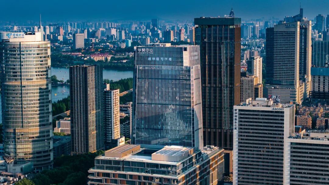 南京华贸中心位于城市“黄金中轴”中央路,坐拥玄武湖与明城墙之间,落位百年湖南路商圈之核,是城市级的高端综合体。总建面约45万㎡,涵盖超甲级写字楼、精品购物中心、街区商业、华贸国际公寓、华贸雅诗阁服务公寓、央行旧址广场等复合业态。