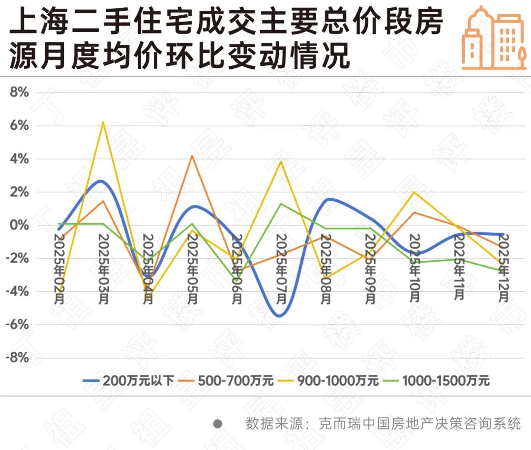 在挂牌量变少,“低价竞争”较少的同时,上海总价200万以下二手价格自2025年11月开始趋稳,筑底信号明显。