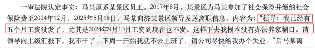法院判决书显示,该景区至少从2024年下半年就开始拖欠员工工资。
