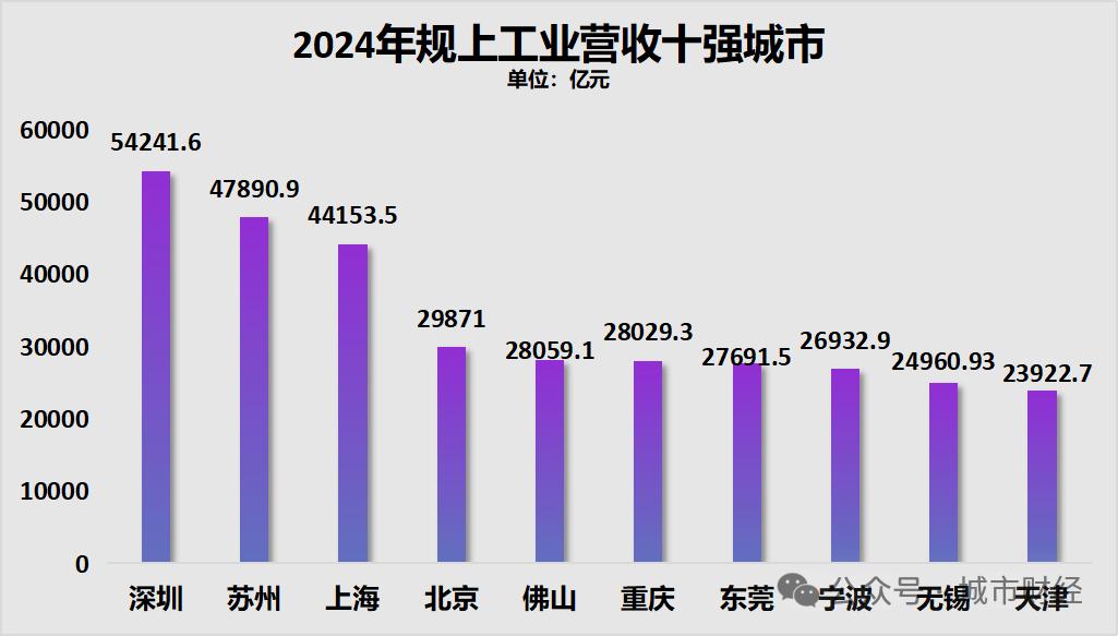工业角度来看,南京的 工业 增加值,2022年排名在十名开外,位居第17位, 而宁波的工业增加值位居全国第七。 2023年规模以上工业营收排名,南京15863亿元,同样在10名开外,2024年数据未公布。 宁波2023年规上营收24799.9亿元,2024年增至26932.9亿元,位居全国第七。