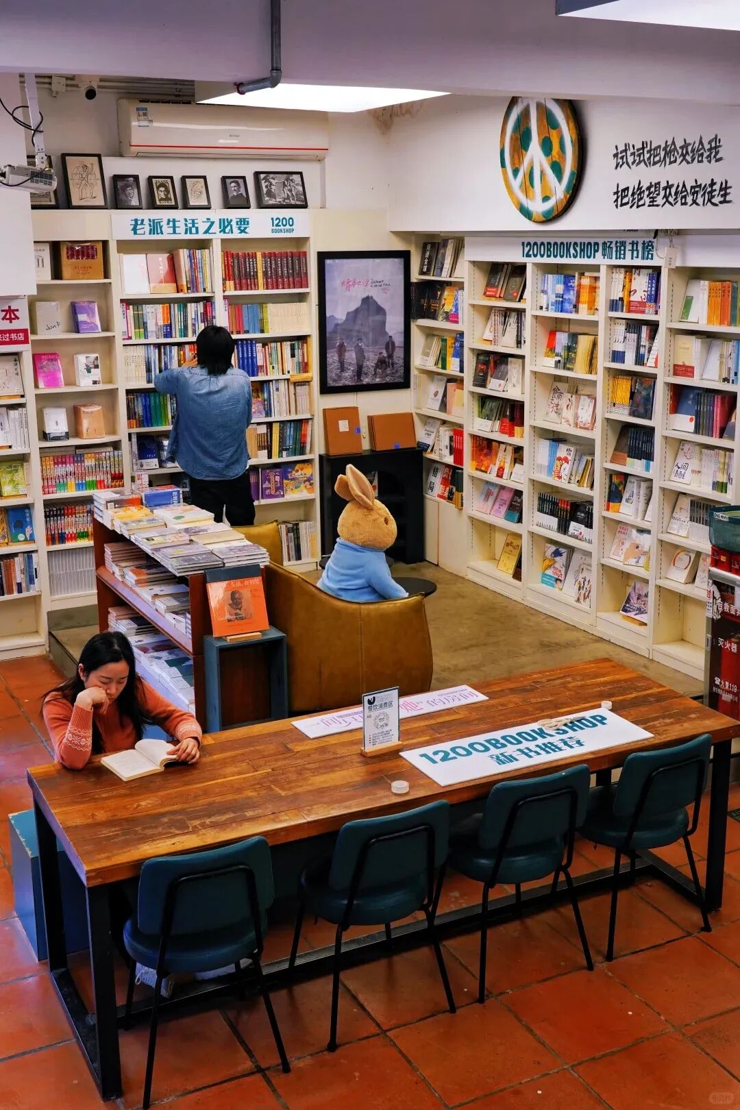 张扬不羁、妥妥文艺范儿的刘二囍,和初期的 1200都带着年轻时的恣意妄为。最开始24小时书店内,吧台旁留一间小房,免费给背包客提供沙发住宿,需提前发邮件说明“想睡的理由”;凌晨 2 点到 6 点,图书打 6.8 折还送免费咖啡。