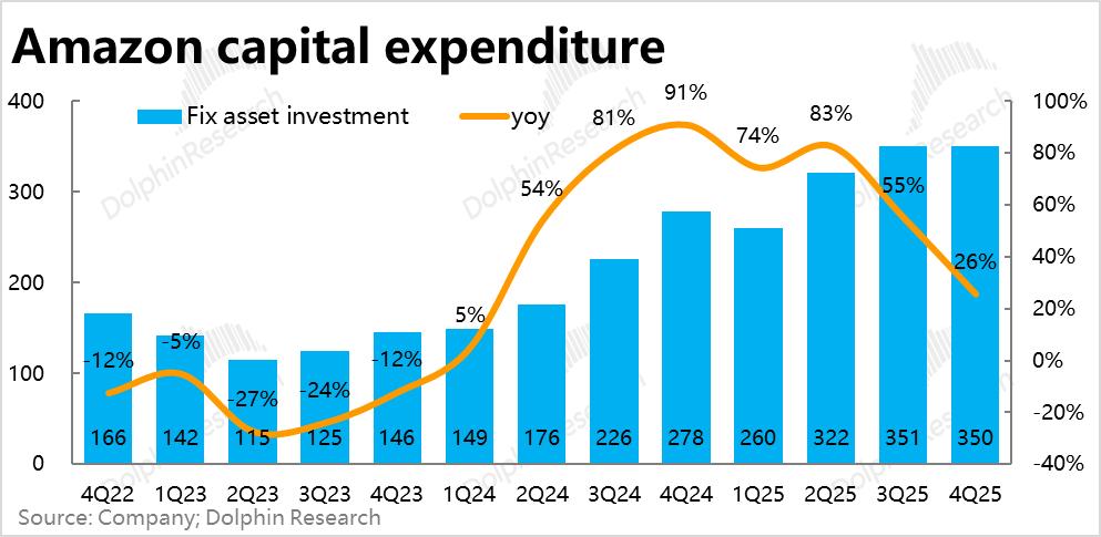 虽然本季Capex并未失控,但问题是公司指引26年总Capex将达到2000亿!相比目前已不低的单季$350亿还要再拉升43%。也远超目前其它所有云巨头的Capex预算(约在1500~1800亿之间)。