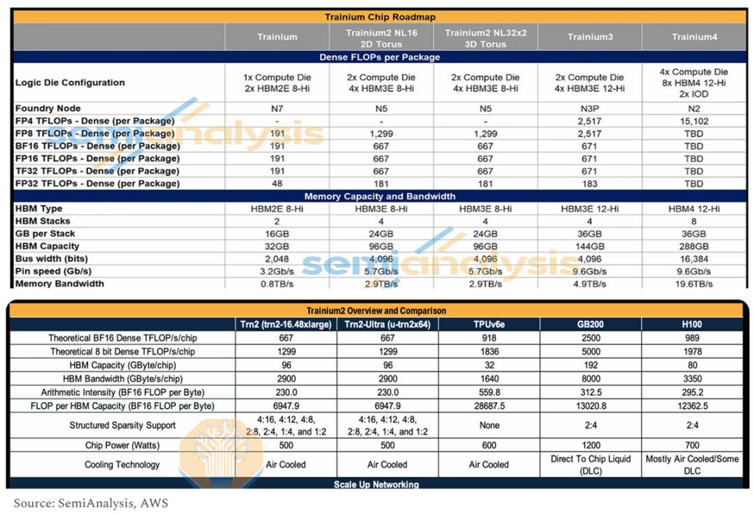 c. 自研芯片:软件之外,在硬件能力上,公司近期推出了第三代Trainium芯片,算力较上代版本翻倍,并达到了H100的约127%。