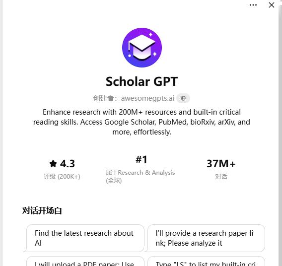 整个社区排行榜第一的“GPT”是个学术智能体,其评价只有20万+,3700万个对话。假设每个用户发10条对话,相当于ChatGPT8亿周活用户里,只有0.5%的用户使用过这一智能体——如果按照注册用户计算,比例还会更低。