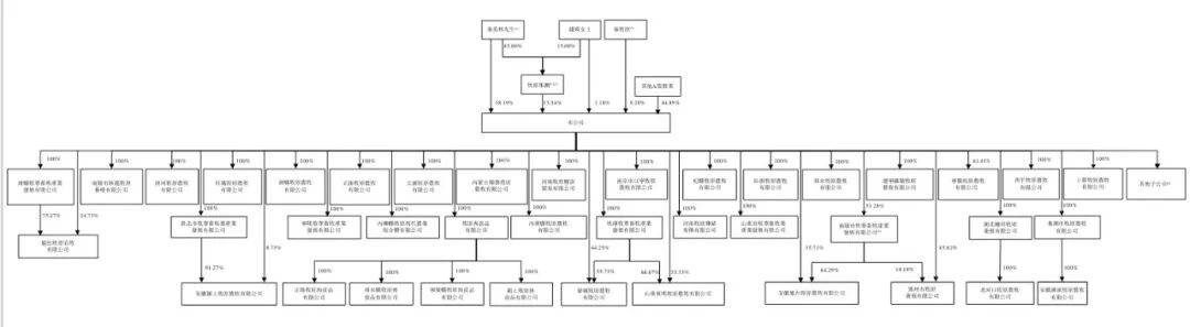 秦英林和钱瑛女士为公司实际控制人,两人为夫妻关系。秦英林和钱瑛女士合计持有牧原集团100%股权,两人一共控制公司55%股权。