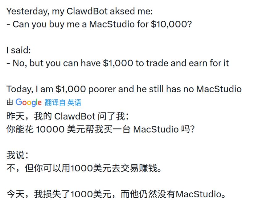 目前Clawdbot更像是一个“数字管家”,它在人的授权下去操控手机和电脑等设备,能自动完成一些原来就是人类在操作的事情,至于是否赚钱,还在于人的策略。