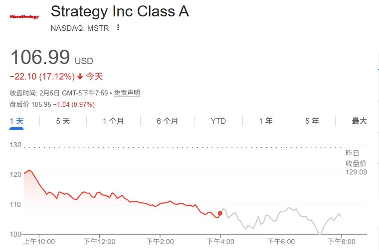 在投资者对业绩的失望情绪中,Strategy股价周四重挫17.1%。不仅抹去了美国大选后的所有涨幅,也导致该股较2024年11月的历史高点下跌了近80%。
