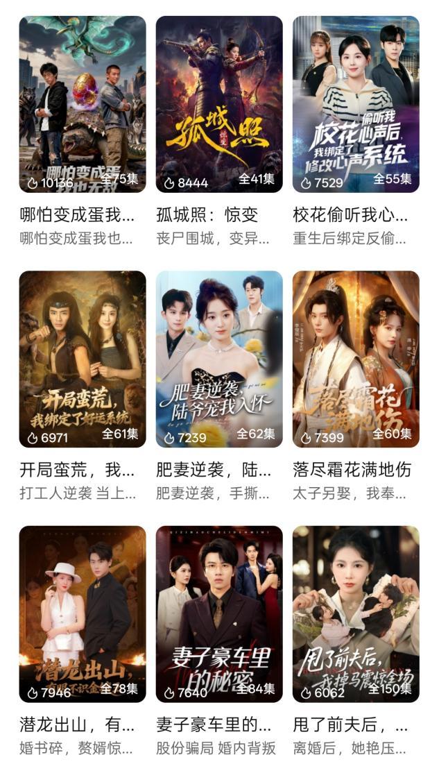与此同时,腾讯、百度、快手、阅文等头部互联网大厂也已入局该赛道,或推出独立漫剧APP,或加紧入库漫剧内容。就在前天,腾讯就推出了旗下首款漫剧独立App“火龙漫剧”,优爱腾芒等视频平台先后开设漫剧板块。像是腾讯视频,AI仿真人剧《哪怕变成蛋我也无敌》热度一度突破10136,《孤城照:惊变》也来到8444。而像是《末日深山:房车囤货与生存之战》为主的末日囤货题材仿真人剧,也同样在短时间内突破7000热度,在短剧热度榜单中均处于中上游。