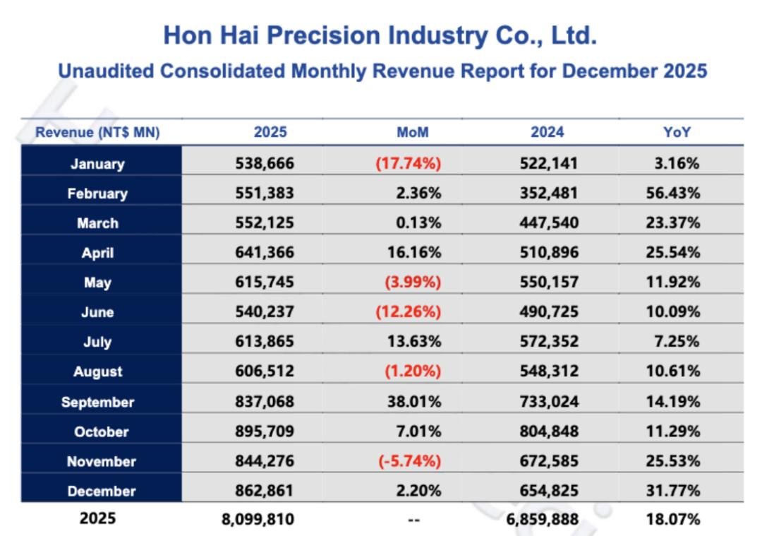 值得一提的是,鸿海的上一个年度营收纪录是2024年的6.859万亿新台币,这也是公司历史上首次实现单年“超1万亿新台币”的营收增长。1万亿新台币相当于人民币2219亿元。
