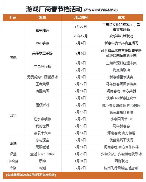 线上始终是电子游戏春节活动的核心阵地。游戏内更新新春版本,已经是常规操作,而在游戏的直播间里,各大厂商今年也玩出了新花样。