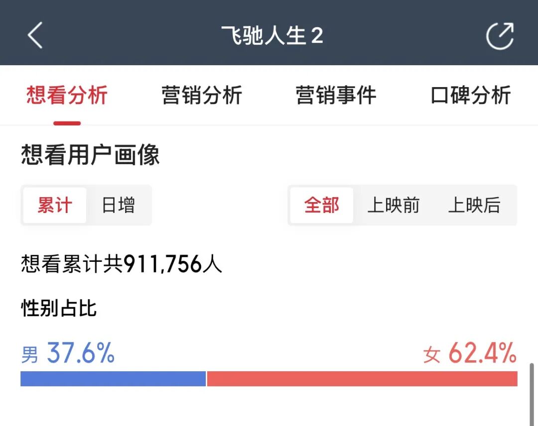 尽管“全男阵容”影片常能收获高票房,但一个常被忽视的事实是:女性观众才是电影消费的主力。比如《飞驰人生2》女性观众占比约六成,就连硬核科幻《流浪地球2》,也是女观众占比更多。