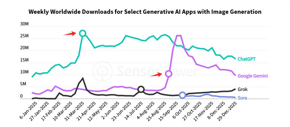 相比「闷声发大财」的AI Coding,多模态才是AI接近普通人的破圈手段,去年ChatGPT和Gemini的两次「翻倍级」增长,一个是因为GPt-4o的「吉卜力风潮」,一个是基于Nano Banana的降维打击,都是多模态在立功。