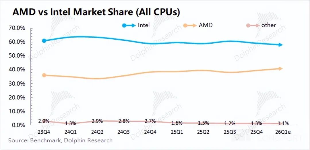 公司寄希望于AI PC能成为公司一个新的增长点,然而当前公司在PC市场份额仍很低,还难以形成对英特尔和AMD的竞争。