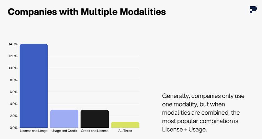 最终结果,采用基础月费+超额买点卡的混合模式,效果最佳。此类产品报告最高中位增长率为21%,表现优于纯订阅和纯基于使用量的产品。46%的SaaS公司结合订阅与可变收费,59%的人预计基于使用量的定价将在2026年实现收入份额增长,高于2023年的18%。