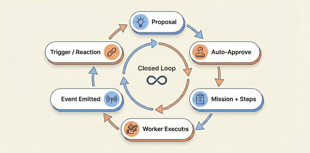 测试时我发现:触发器正确地检测到了条件并创建了提案。但提案永远处于待定状态——从未变成任务,从未生成可执行步骤。