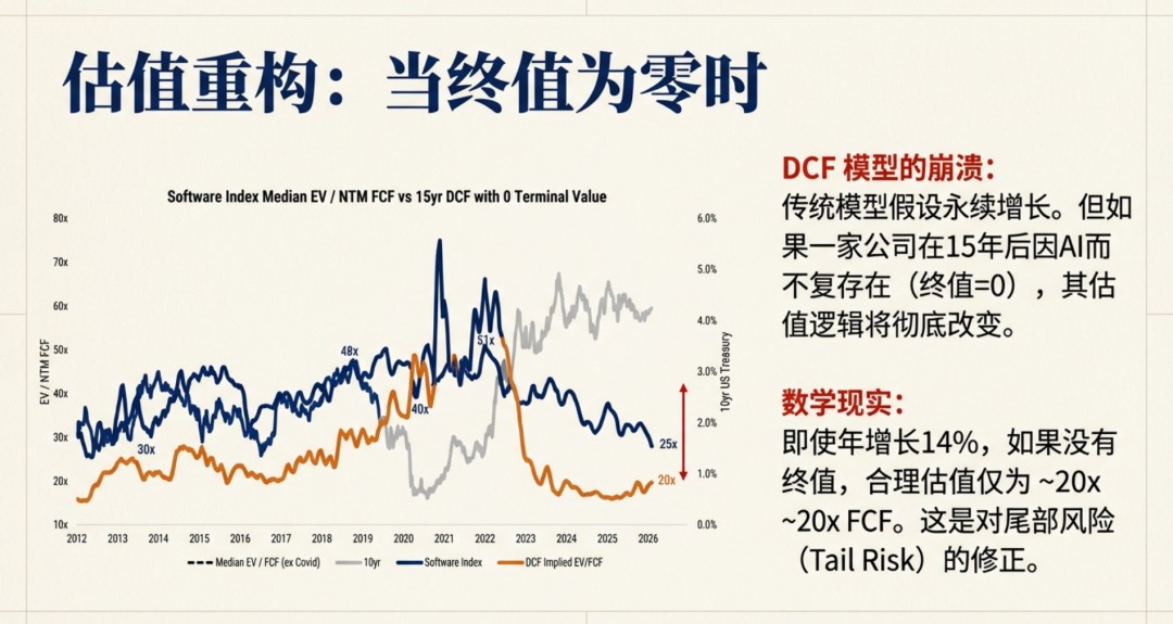 我之前曾提到,投资者需要保持一份谦逊,去正视我们正在见证的这种指数级技术跃迁。你真的敢拍胸脯保证,某只软件股 X、Y 或 Z 在 15 年后还会存在吗?