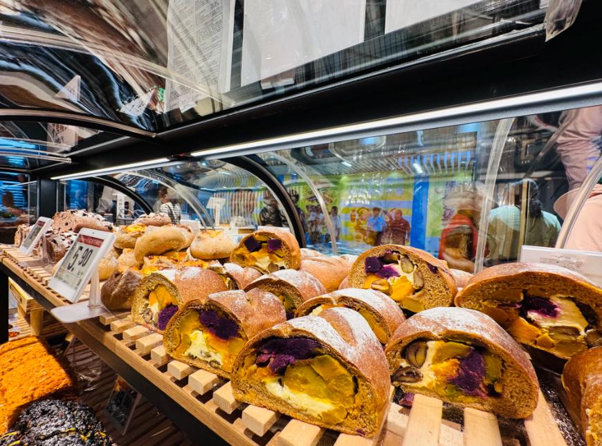 可口的瑞士卷,颜值顶流的草莓蛋糕……“货架里选择很多,光看着、闻着就很幸福,能让大脑清醒。” 李毅说。而以前他去的更多是专门的面包店,但那里会贵一些。